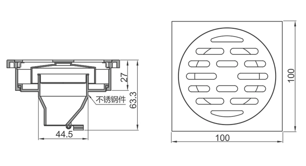 不銹鋼地漏內部設計專用拆洗開關,操作簡單,輕巧靈活,可重復拆洗,以防地漏污濁或堵塞,清潔方便