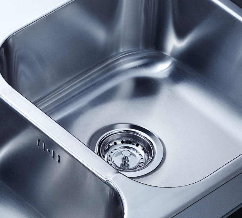 水槽四邊條采用一次成型的折彎加強筋工藝,雙倍堅固,承重力更強,解決了普通焊接工藝容易出現的凹點、脫焊、易割手等問題。專業配置的密封條和固定夾,安裝平整度高,不滲水,不松動