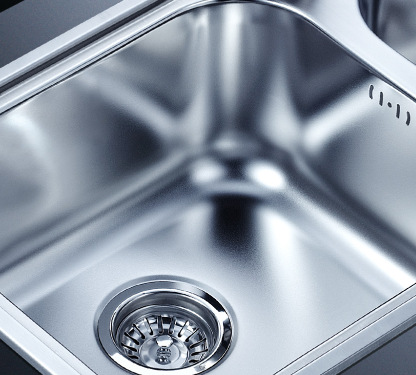 阿發水槽整體經拉絲處理,質地更加光滑,視覺更加柔和。能有效抵擋異物撞擊,刮傷及磨損,防止油污沾染,常用常新;柔和的光澤令水槽平添高雅氣質,更能避免鏡面材質反射的光污染