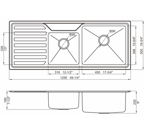 槽底采用斜面壓痕,四輻導(dǎo)流槽設(shè)計(jì),與平面壓痕和無痕水槽相比,導(dǎo)水更為流暢,下水更迅速,能有效防止積水,消除沉淀物