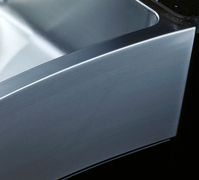 阿發水槽整體經拉絲處理,質地更加光滑,視覺更加柔和。能有效抵擋異物撞擊,刮傷及磨損,防止油污沾染,常用常新;柔和的光澤令水槽平添高雅氣質,更能避免鏡面材質反射的光污染