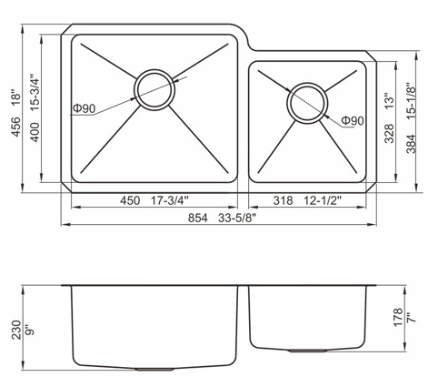 槽底采用斜面壓痕,四輻導流槽設計,與平面壓痕和無痕水槽相比,導水更為流暢,下水更迅速,能有效防止積水,消除沉淀物